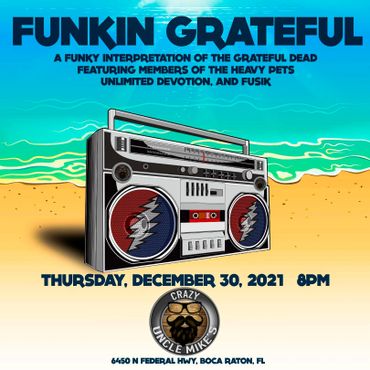 Funkin' Grateful is comprised of music veterans from the jam band world based in South Florida. Funkin' Grateful provides a unique and funky interpretation of the music of the Grateful Dead. Members hail from The Heavy Pets, Unlimited Devotion, Fusik and The Ricca Project.